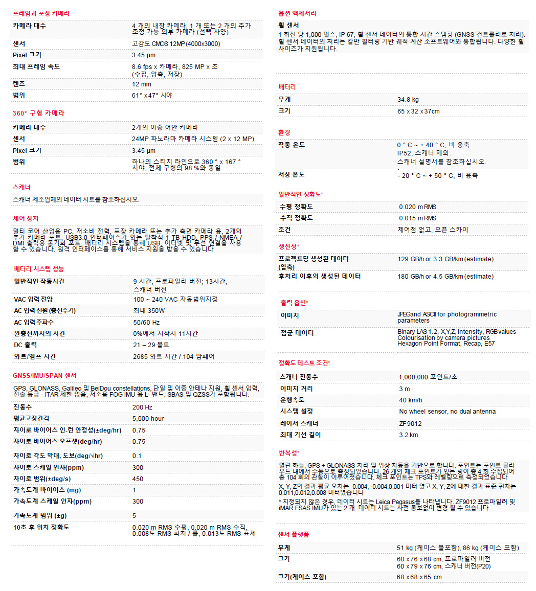 - LiDAR System: Integrated NavBox, Class 1 (eye safe), 905nm, M8 LiDAR Sensor, IMU-14/27
